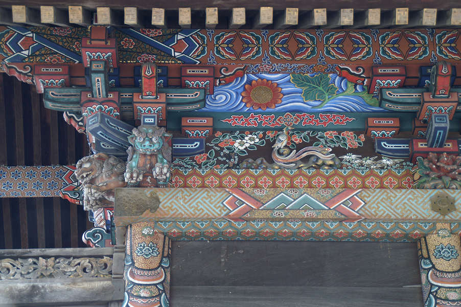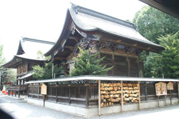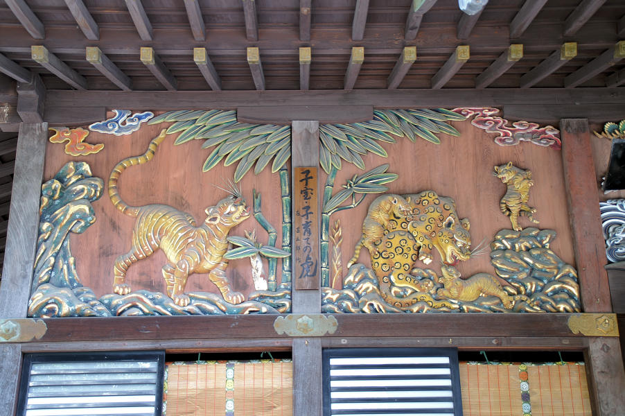 当社は戦国時代(永禄12年-1569)に甲斐の武田信玄の手により焼失した(信玄焼き)。現在の権現造りの社殿は徳川家康が再建したもので、本殿、幣殿、拝殿が並ぶ。社殿にはさまざまな彫刻が施されている。なかでも左甚五郎作の「つなぎの龍」は有名。