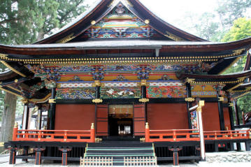 寛永6年、四年の歳月をかけて建立。彫刻が精巧で、漆塗り、彩色復元工事で施された漆塗極彩色も美しい。 |